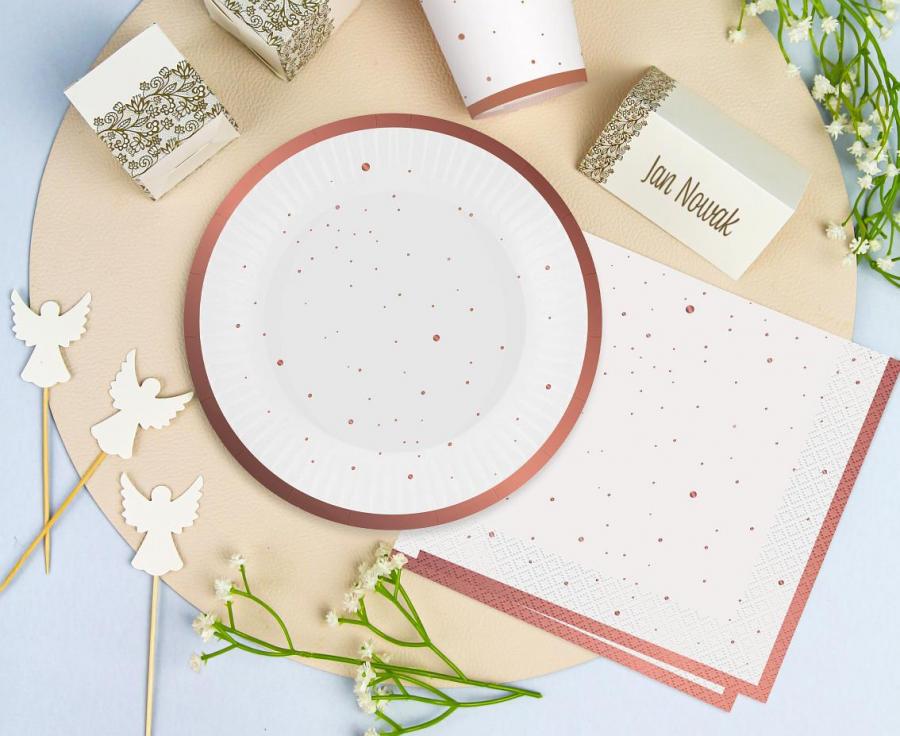 Papirnati tanjur - bijeli s ružičasto-zlatnim rubom i točkicama