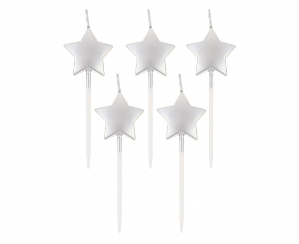 Svijeće za tortu - u obliku zvijezde, srebrne boje, 5 kom