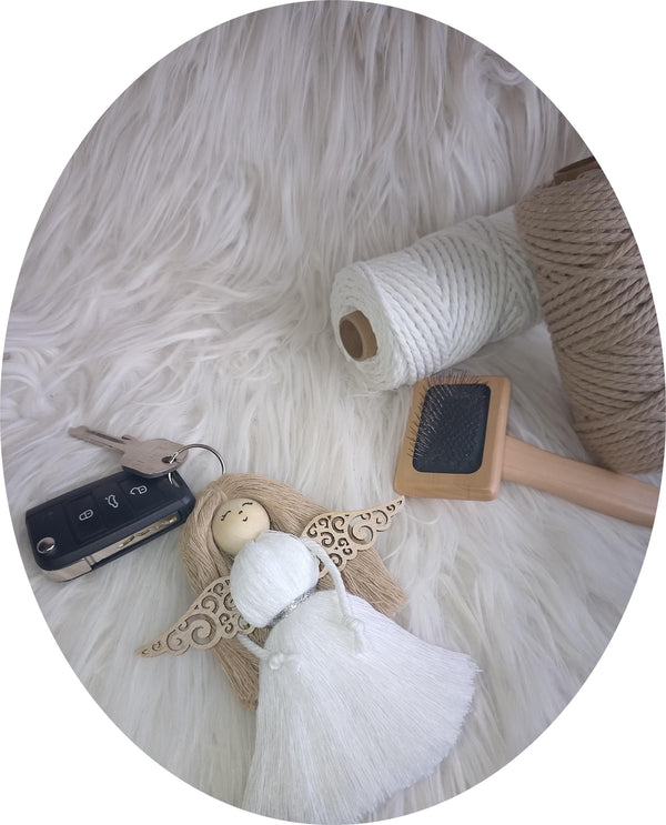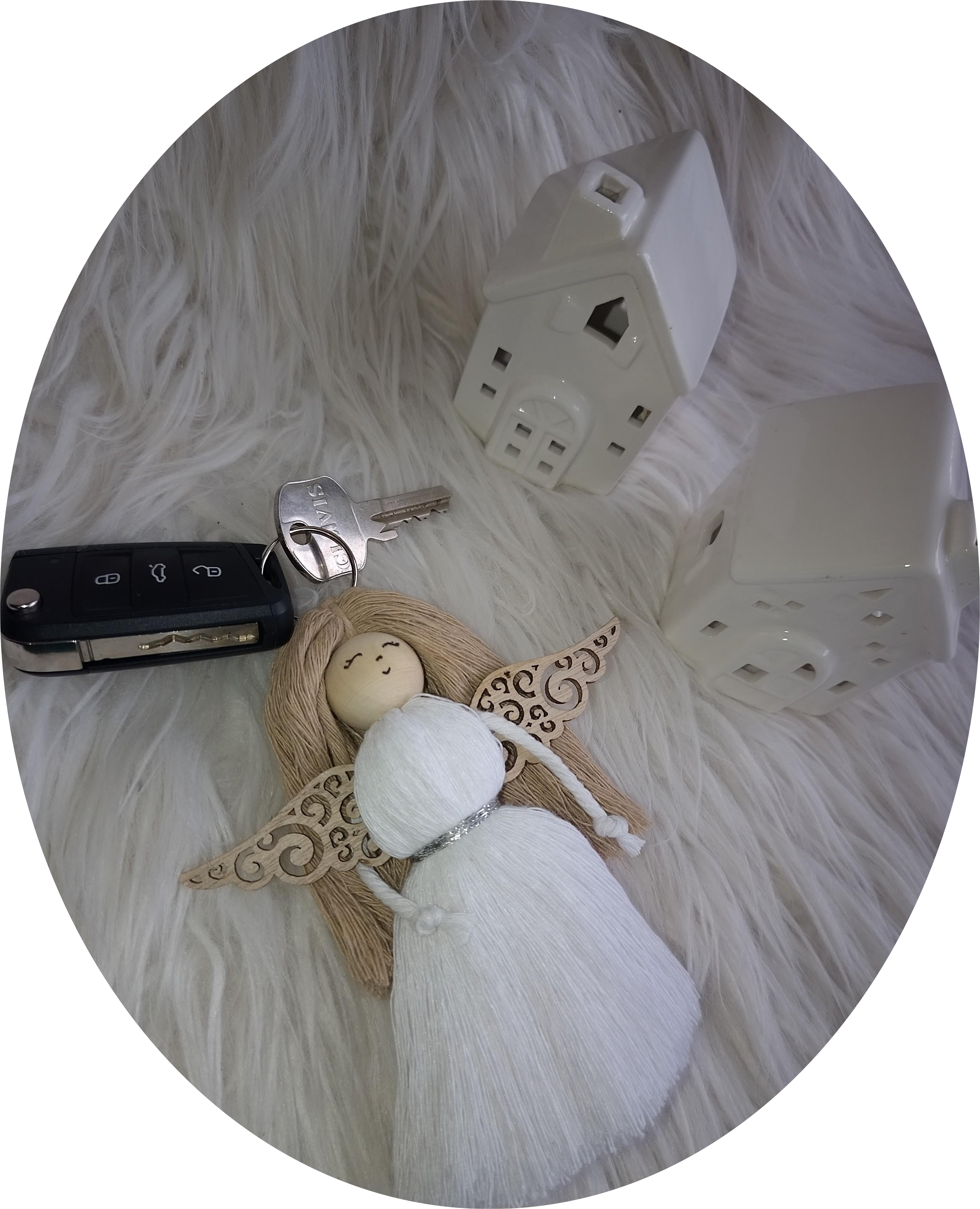 Macrame sretni anđeo - ručno izrađen privjesak za ključeve