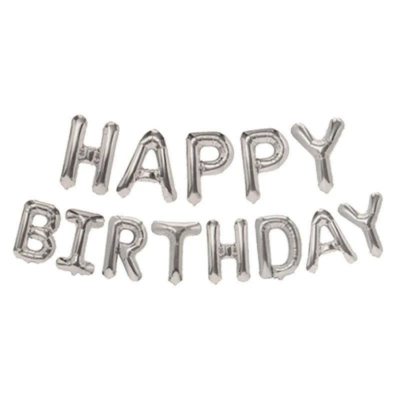1x viseći natpis Happy Birthday srebrne boje, 340 cm