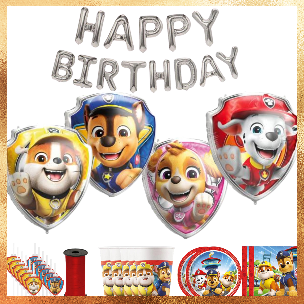 Pripremite nezaboravan rođendan s našim premium kompletom Paw Patrol. Set sadrži sve što vam je potrebno za tematiku popularne crtiće: dekoraciju, pribor i rekvizite za zabavu. Jednostavno za korištenje, zabavno i idealno za male obožavatelje koji žele svoj poseban dan obojiti svojim omiljenim junacima.