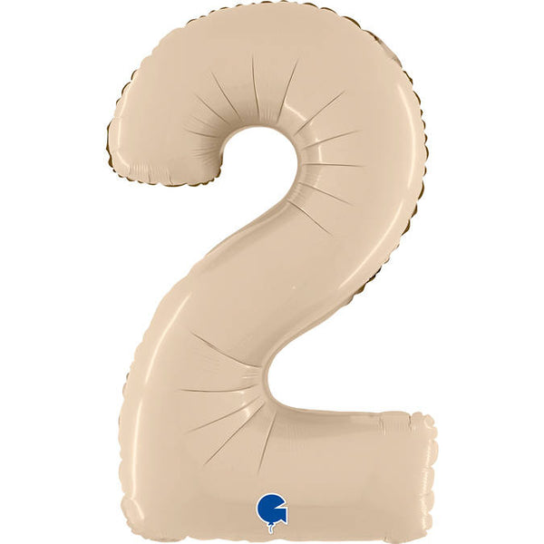 Folija balon broj 2, krem saten (66 cm) - elegantan balon nježno krem boje savršen za proslave, rođendane i posebne prilike!