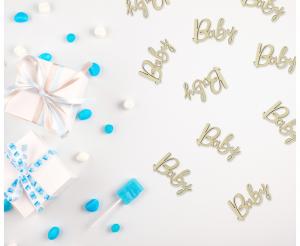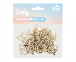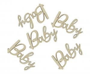 Drveni konfeti s natpisom "Baby" veličine 6x3 cm.