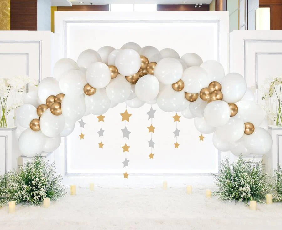 Balonski luk od bijelog zlata. Luk od balona bit će prekrasan ukras za svaki vaš događaj. Girlanda od balona za rođendansku zabavu.