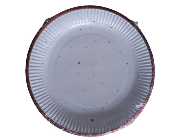 Papirnati tanjur - bijeli s ružičasto-zlatnim rubom i točkicama