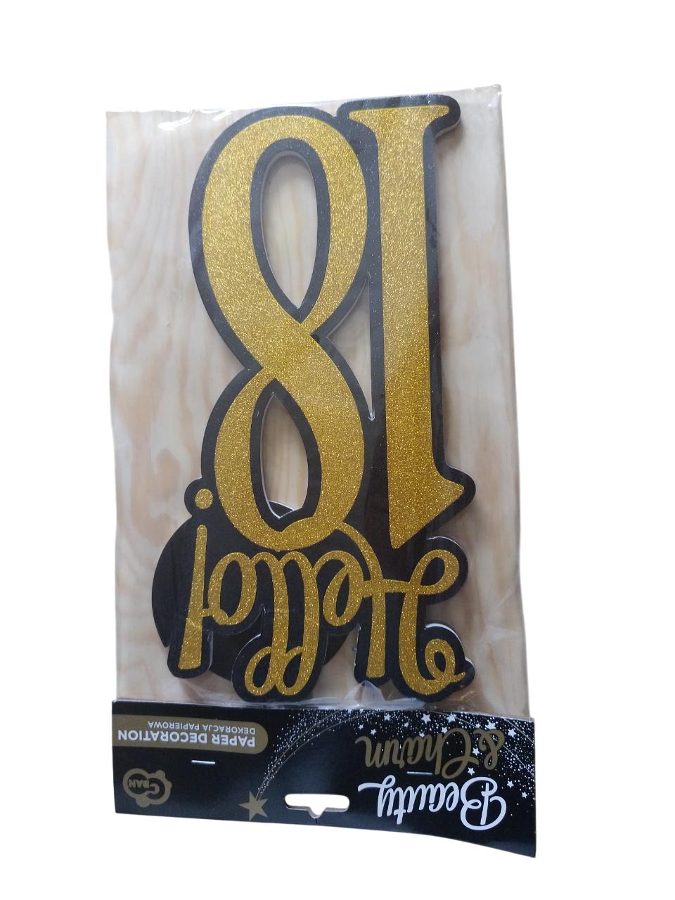 Stojeći broj 18 u glamuroznoj zlatnoj i crnoj boji.