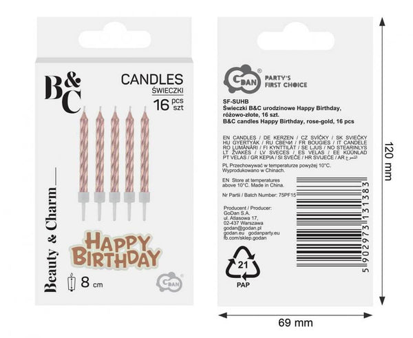 - Broj komada u paketu: 16 svijeća + 16 držača + posuda za poklone s natpisom Happy Birthday